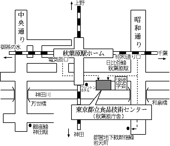 「交通案内」 ○ 東京都立食品技術センター案内図 ● JR線・営団地下鉄日比谷線 秋葉原駅下車徒歩3分 ● 都営地下鉄新宿線 岩本町下車徒歩5分