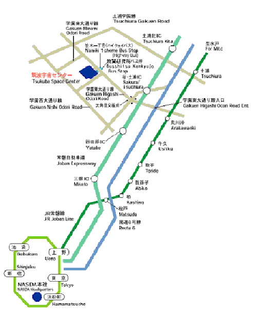| 14:00 〜 15:30 | NASDA見学 見学コース (1)視聴覚室 (2)展示室 (3)宇宙ステーション試験棟 (4)無重量環境試験棟・宇宙飛行士養成棟 | |