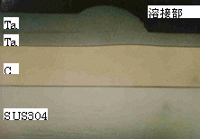 Taは高価な材料であり、材料価格を低減化させるためにクラッド化を行っている。クラッド化には拡散接合を利用しているが、TaとSUS304の接合では
