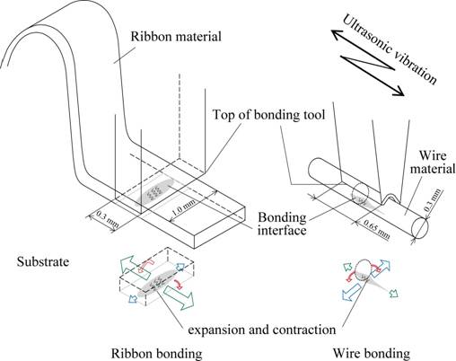 超音波接合であってもリボンとワイヤでは変形モードが異なる。